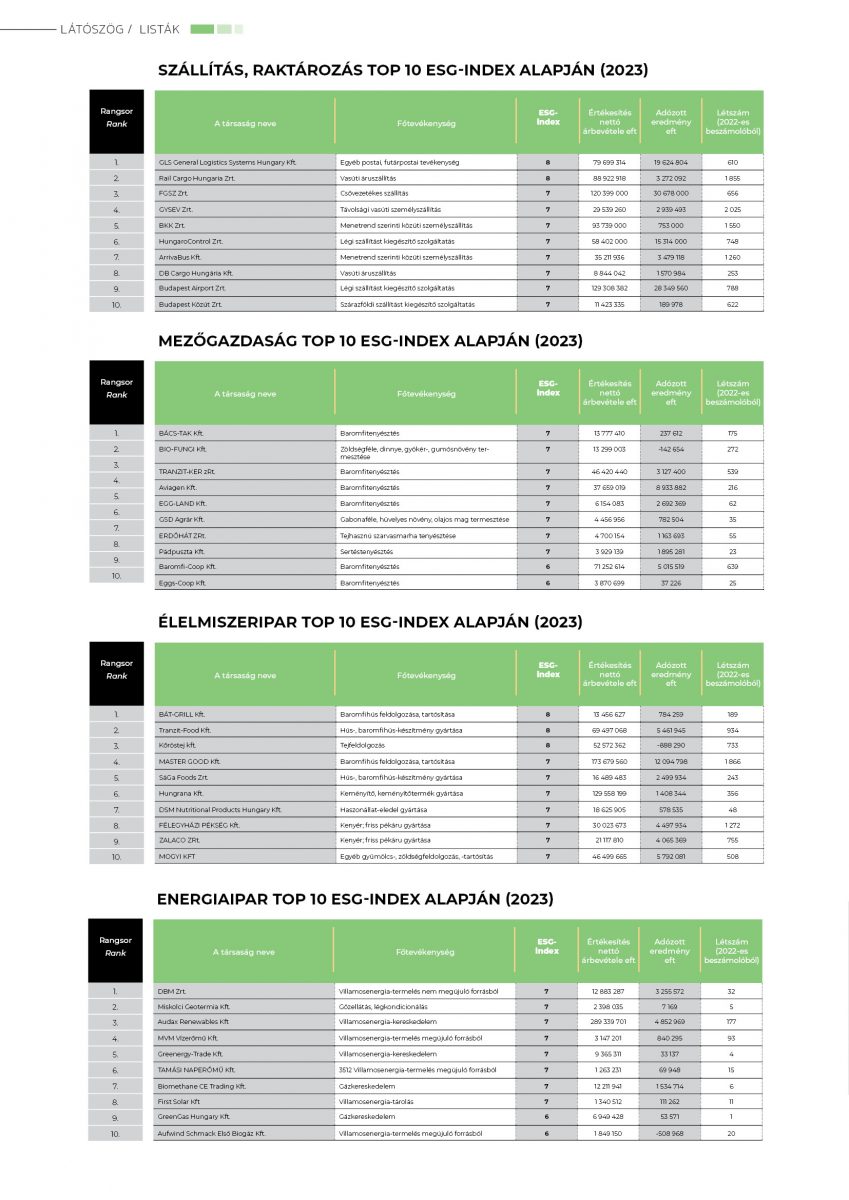 OPTEN: TOP 10 CÉG ESG-INDEX ALAPJÁN (2024)